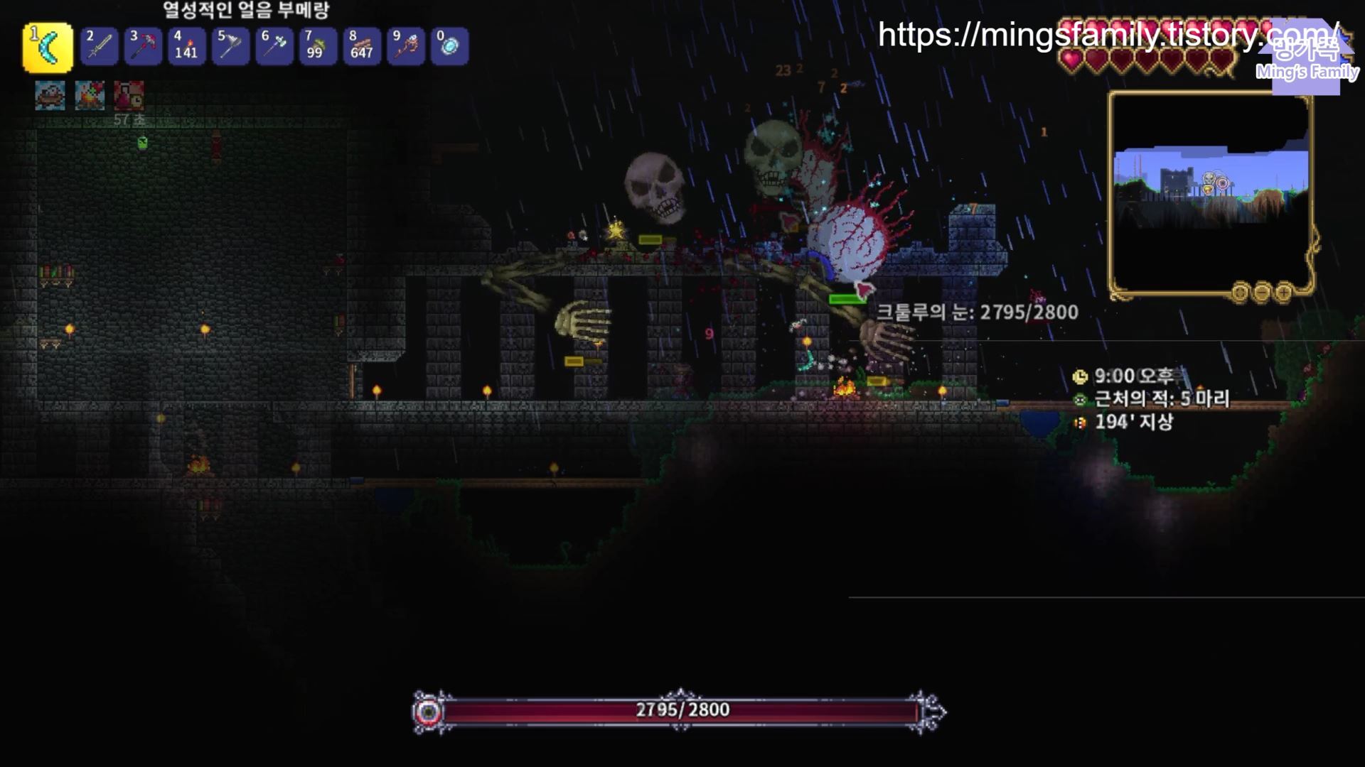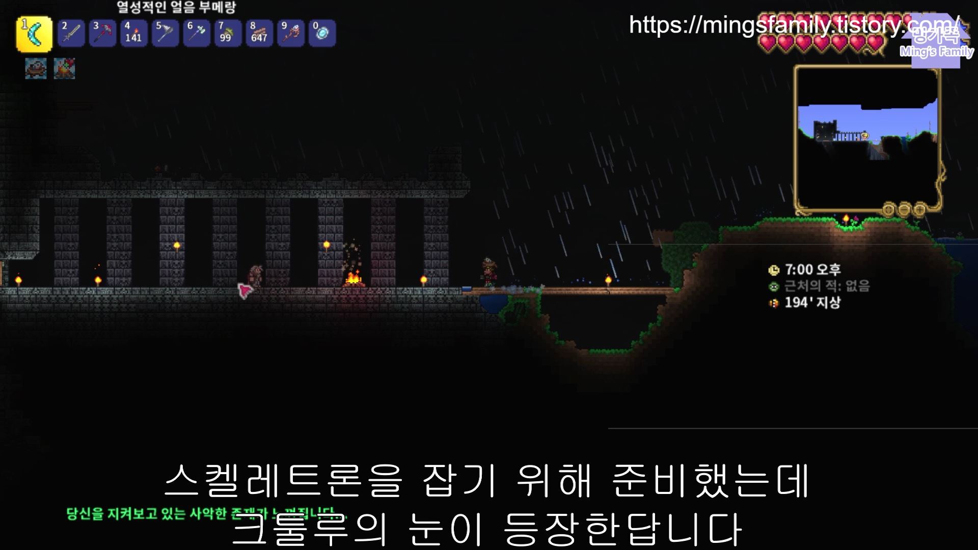 밤을 기다려왔기에 스켈레트론을 소환했고 정말 힘들게 잡았습니다.
