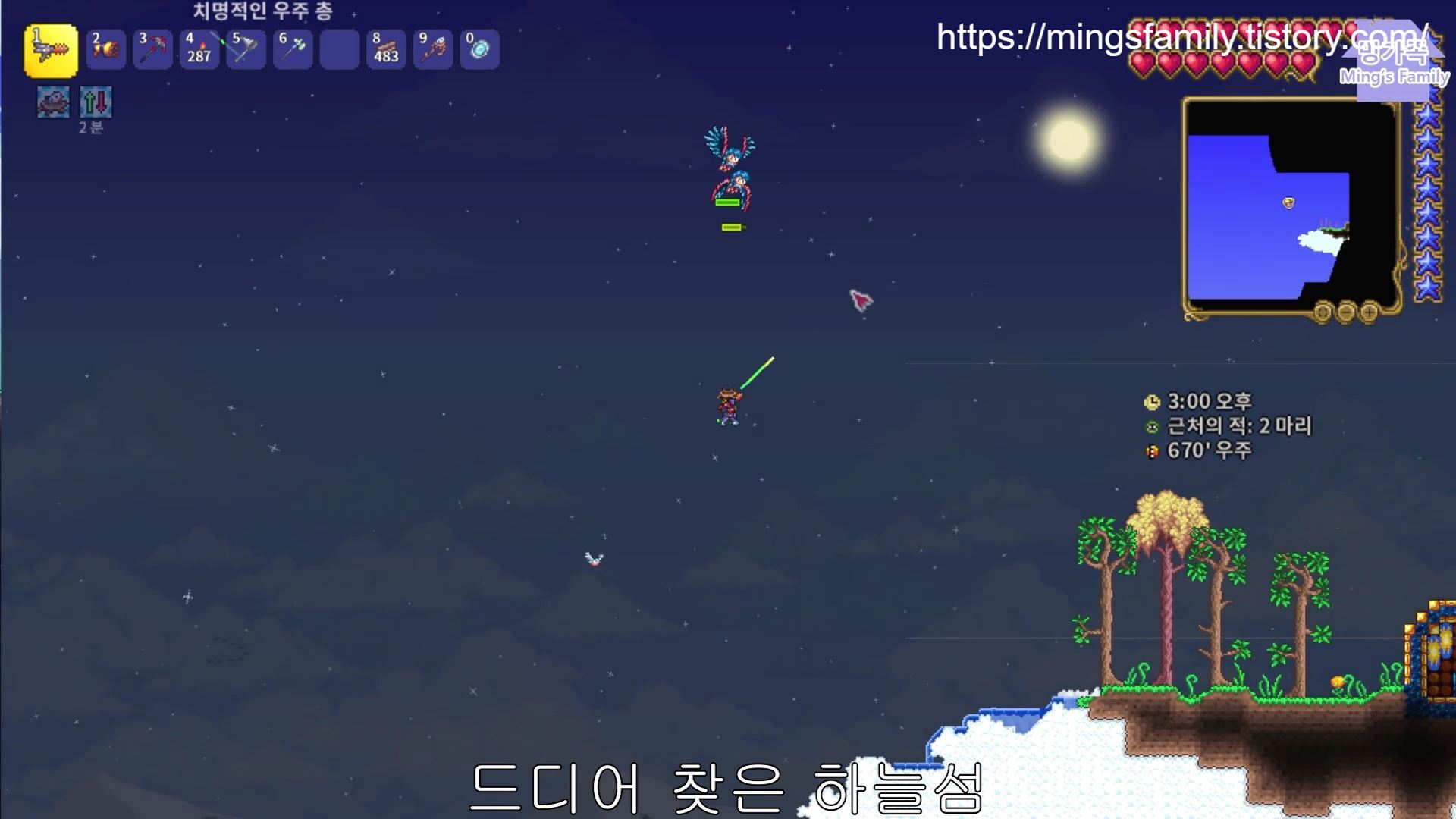 낙하 데미지를 방지할 수 있는 아이템을 얻기 위해 하늘섬을 찾아봅니다만